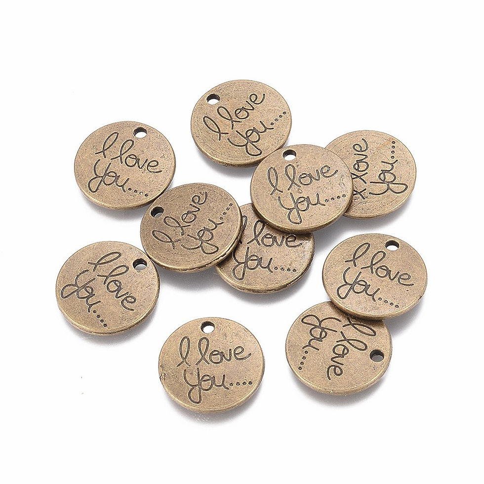 20mm Antique Bronze Round Alloy Word Charms 10pcs