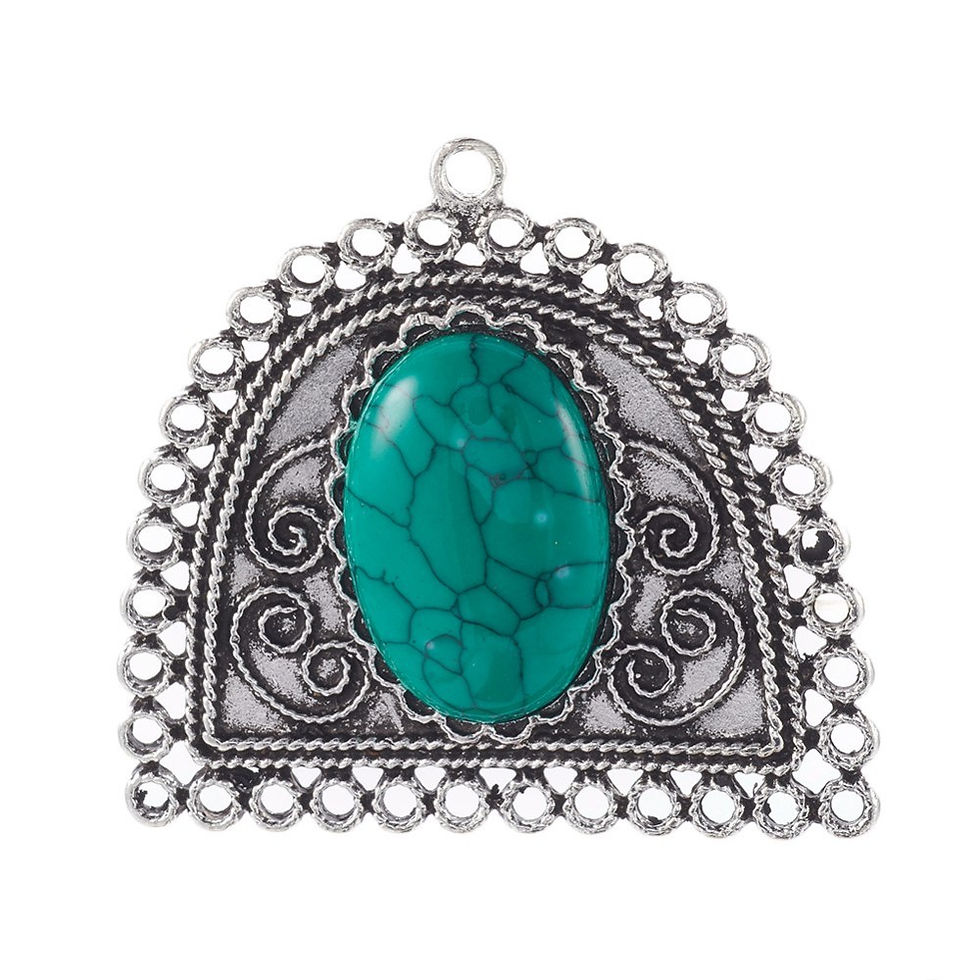 Chandelier Turquoise Half Round Antique Silver Bisque Pendant 1pc